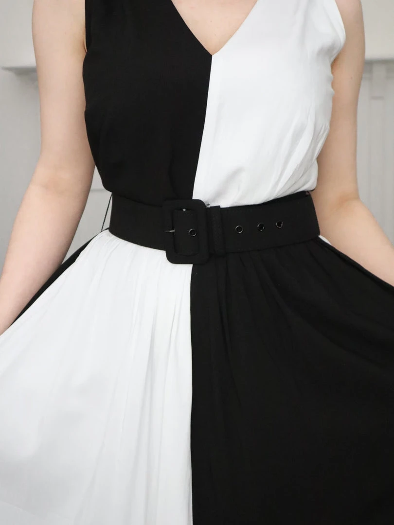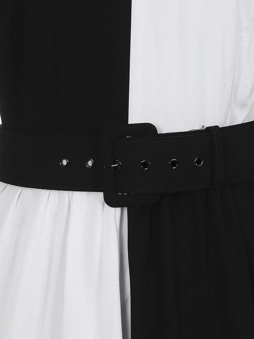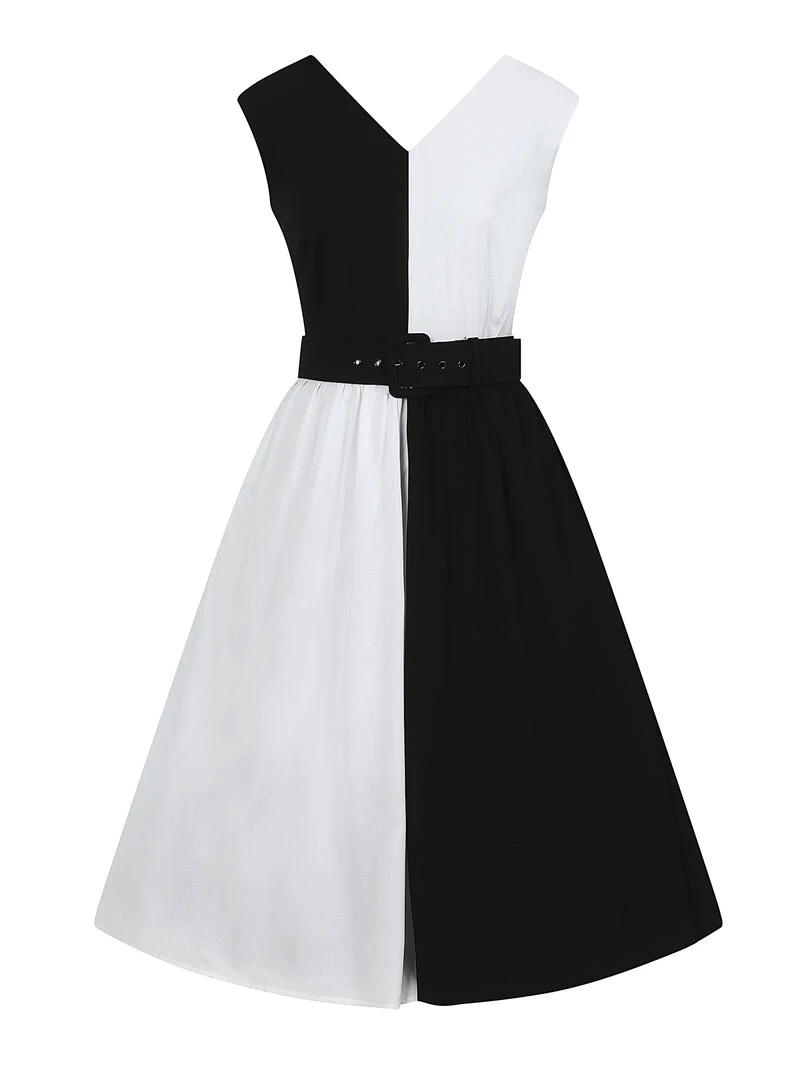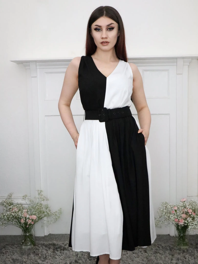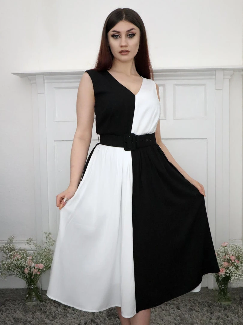 Opposites most certainly attract in this gorgeous monochrome Enora Swing Dress in black and white. Perfectly balanced with her split sides, she has a v front and back neckline and comes with a black belt to complete the look above her full swing skirt. We love how versatile Enora is, as she can be worn with any other colours and we love her with our MAK Cardis and Pamela Mann Tights.