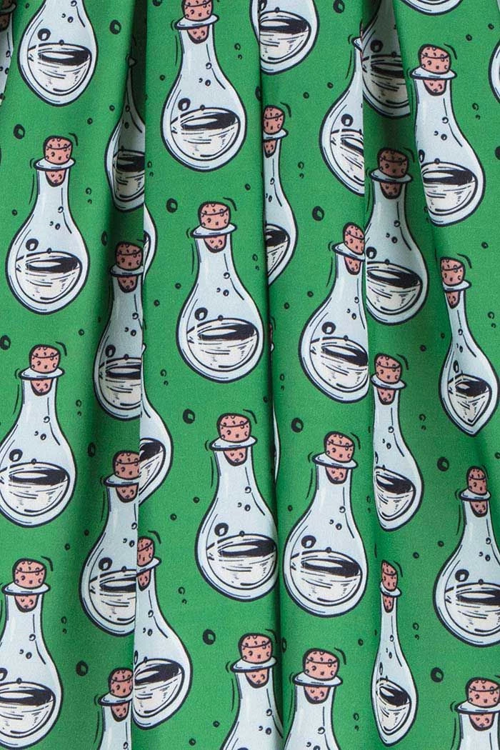 - Print features a Halloween inspired print of potion bottles on a green background.