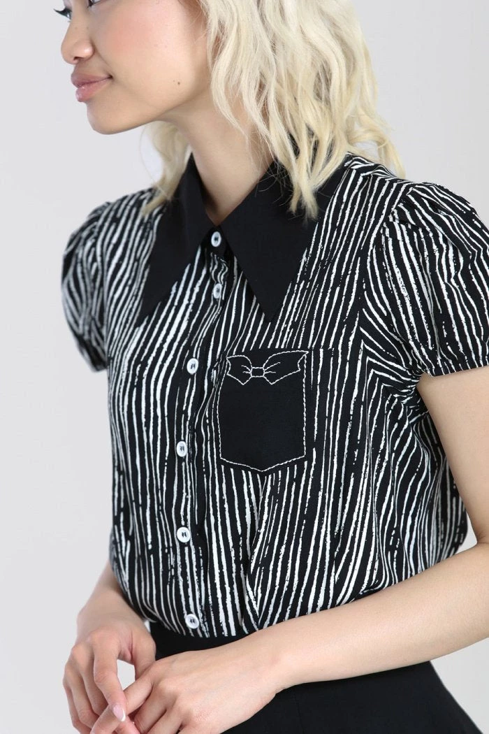 - Black contrast pocket with white stitching bow design