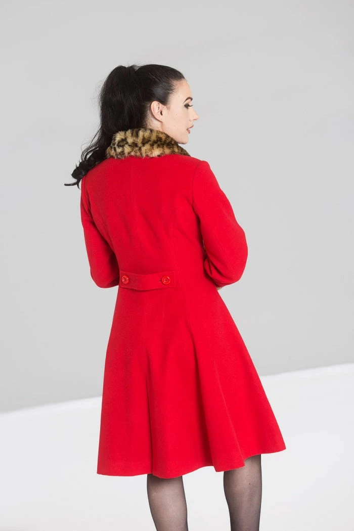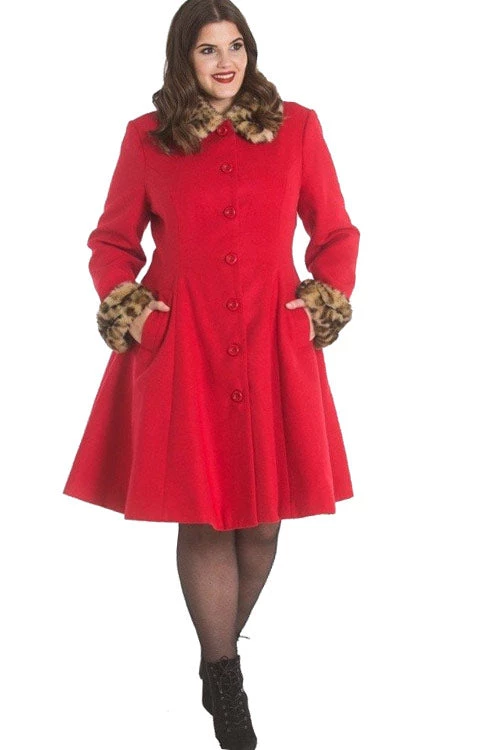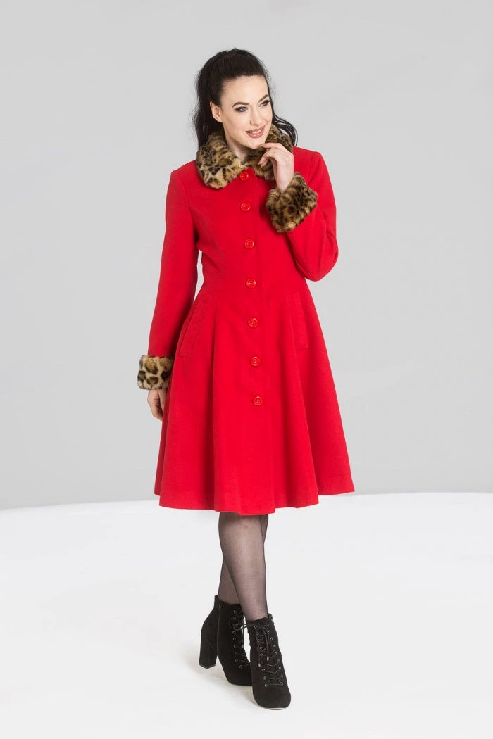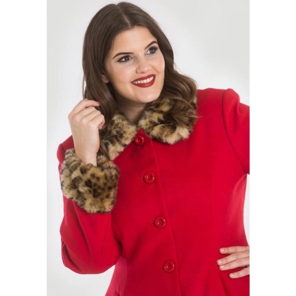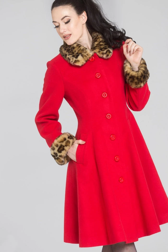 - Fully lined coat with faux leopard fur