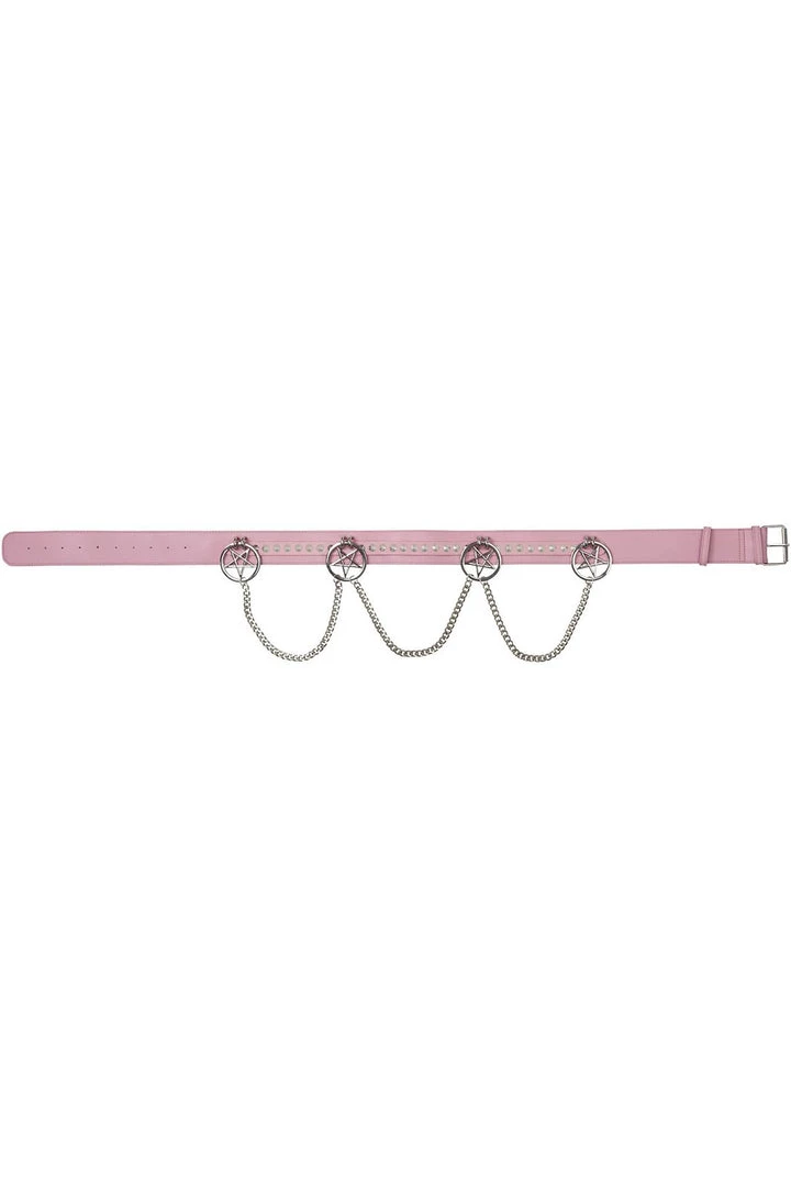Add some instant drama to yer daily rituals; faux leather in a double-layer body with contrasting silver hardware; studded, double D-rings, pentagram rings and connecting chainz. High waist fit – looks seriously killer with bodycon dresses or fishnet!