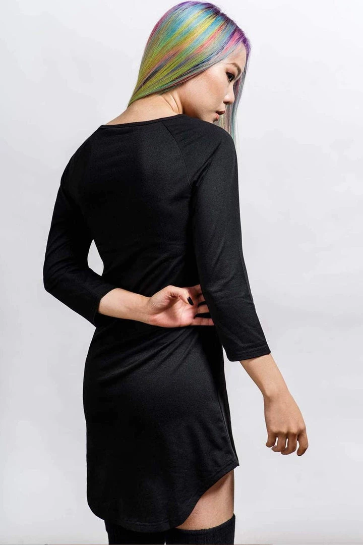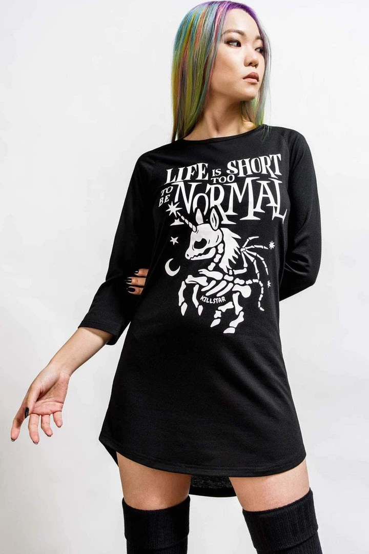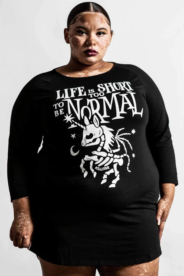 Eat, sleep, goth, repeat in our ‘Gothicorn’ sleep raglan top. Made from a super soft material for a comfortable night’s sleep. Features a contrasting large print on the front, round neck and a loose + long fit for exxxtra comfort!