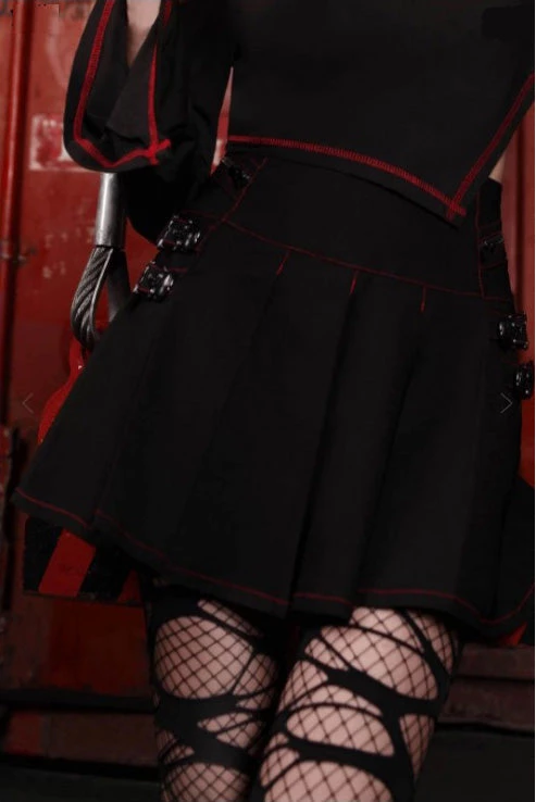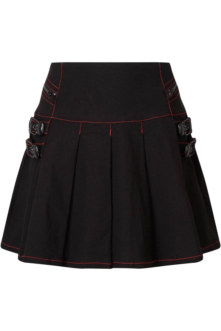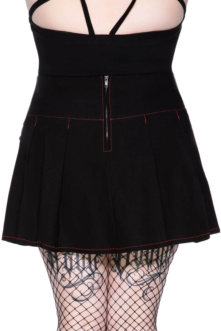 You are only in trouble if you get caught. The ‘Sweet Oblivion’ mini skirt is made using a super-stretch woven fabric which is pleated for the perfect fit. Complete with custom skull buckles, zip accents and contrast stitching. This staple piece is a dream to style – looks great dressed up or down!