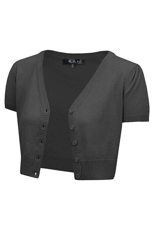 MAK Sweaters Cropped Cardigan With Short Sleeves In Charcoal Winter
