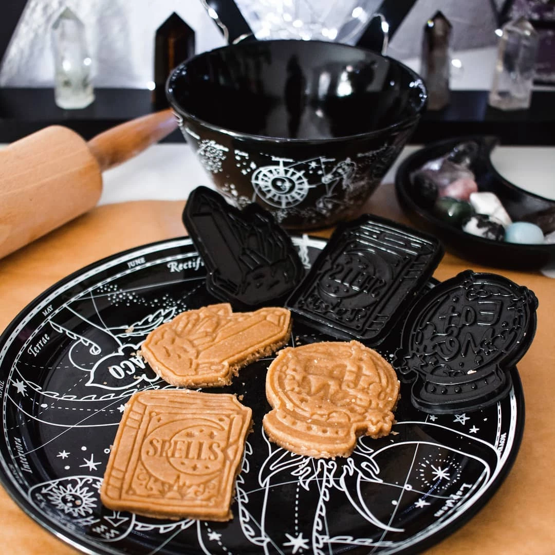 A balanced diet is a cookie in each hand! Get ready to impress with these cute/custom ‘Witchy’ cookie cutters! A 3-pack mix of a spellbook, crystal ball, and crystal cluster – ready to be incorporated in your creations! Black body with practical handle for easy grip. Get baking witches!